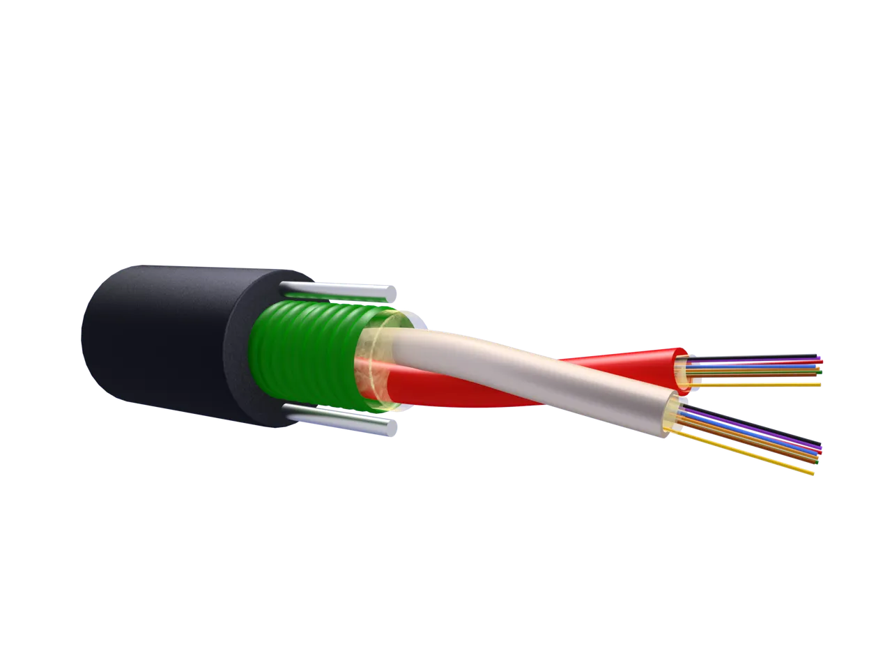 • Наружная оболочка выполняется из композиции полиэтилена. При прокладке кабеля внутри помещений оболочка может быть выполнена из композиций, не распространяющих горение, в том числе безгалогеновых, с низким дымовыделением.